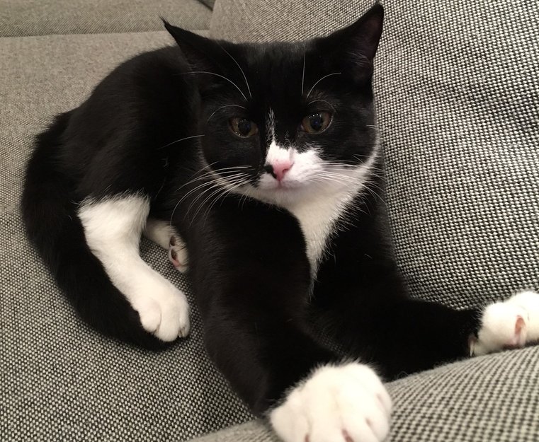 Ble skremt av raketter på Myrerjordet og stakk avgårde. Ung katt på ca. 8 mnd.