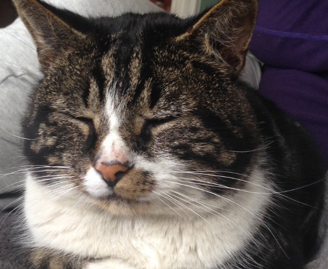 Hans sto på døra akkurat nå😀 Hvor han har vært er ikke godt å si, jeg tenker kanskje han har vært stengt inne eller noe (var rimelig støvete ) 😁 Han var like glad når han løp til mat skåla, men kunne nesten ikke få i seg maten fort nok 😊