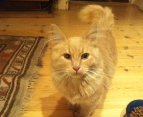 Katten har halvlang gylden, nesten rosa-orange pels og en kraftig langhåret hale. Den er veldig kontaktsøkende og kjærlig.