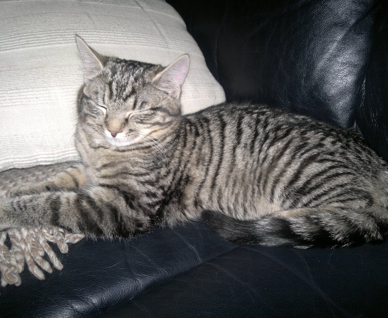 Hun er makrellstripete og litt redd fremmede. Men er egentlig veldig kosete når
