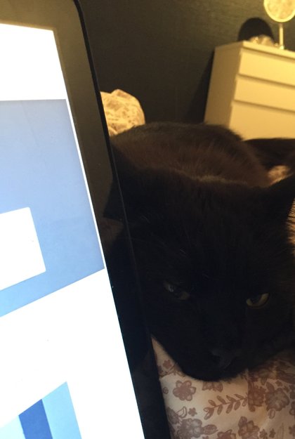 Skipper er svart, han har grønne/gule øyne (kommer ann på lys), et lite arr over nesen og ID merket i øret.