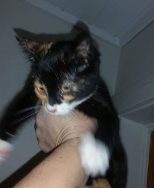 Funnet kattunge ikke eldre enn 20 uker, stod utenfor jobben og mjauet hele natt til 16 januar. Var veldig kald og sulten, har tatt den med hjem da den ikke klarer seg ute I kulden.