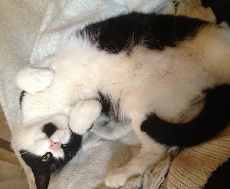 Penny er av typen skipskatt og har en ekstra tå/klo på hver labb. Sort flekk på haken. Veldig tillitsfull og kosete.