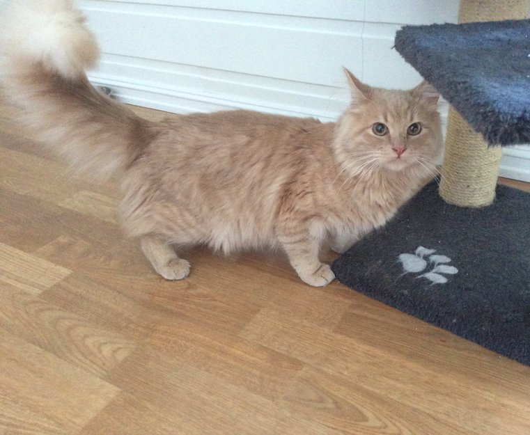 Nydelig ung katt, mulig 5-7 mnd. Den er orange, men kan nesten se ut som det er rosa skjær i pelsen. Halen er hvit på Tuppen. Den er tillitsfull og sosial, så den har nok hatt et hjem og noen må savne denne skjønnheten!