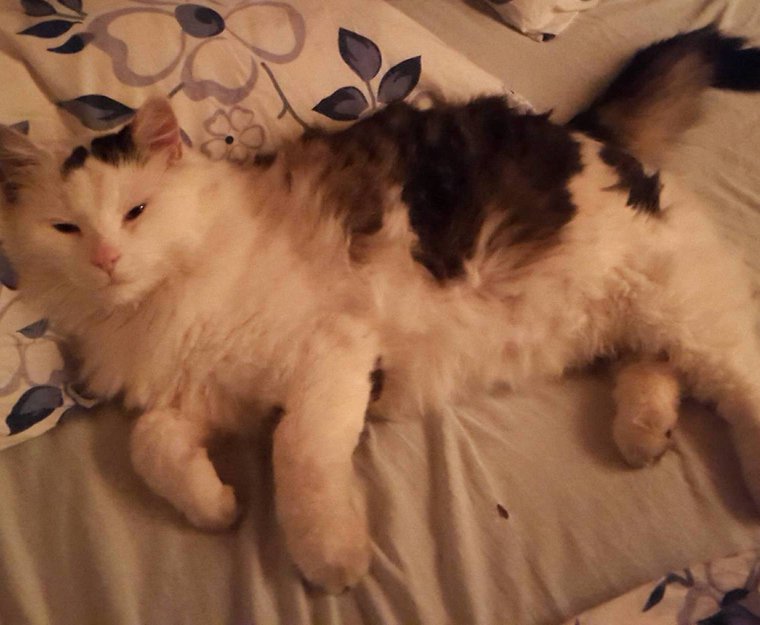 Hvit og mørkegrå. hannkatt var savnet i Trondheim