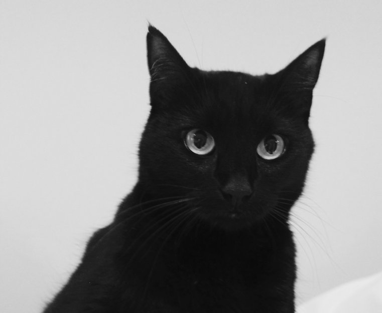 Helt svart, elegant hunnkatt - ca 3,5 - 4 kilo - mao ganske nett.