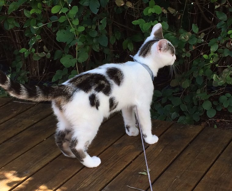 Bildet er tatt i sommer så Snappi er større nå. Han har sort halsbånd med "diamanter" og magnet festet på. Han er veldig kosete!!