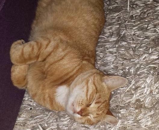 Kastrert, microchipet. Har et svakt merke i øret som henviser til det. Hører dårlig, reagerer kun på høy plystring. Mjauer ikke som andre katter, kun svake pipelyder av og til. Tigerstripet, hvit rundt munnen, hakepartiet og øverst på brystet. Lyse(hvite) og mørkere stripe/ringer på halen.