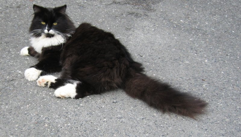 Ble hentet hos dyrebeskyttelsen i Oslo for ca 6år siden.Pleier ikke å være langt borte fra huset.Bor sammen med en annen katt.