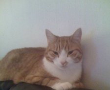 Tigern er rød/oransj striper med hvitt bryst. hvite poter. Han har en hvit snute, men en liten lysebrun flekk på venstre siden av nesa(ser ut som han har spist litt karamell) :o) Han er merket med Chip som sitter under huden i nakken, mulig på høyre side.