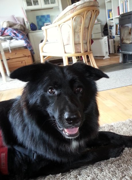 Vår to og et halvt år gamle blandingshund Tass stakk av da han gikk tur med eier ved Hengsrud i nærheten av Revetal i ett-tida i går 11/3-2016.