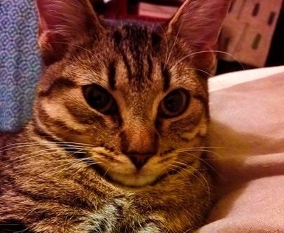 Pus kom ikke hjem fredag 18. mars. brun/gul/svart/hvit stripete hunnkatt. Ca. 9 måneder men ganske stor, så hun kan bli tatt for å være en godt voksen katt.