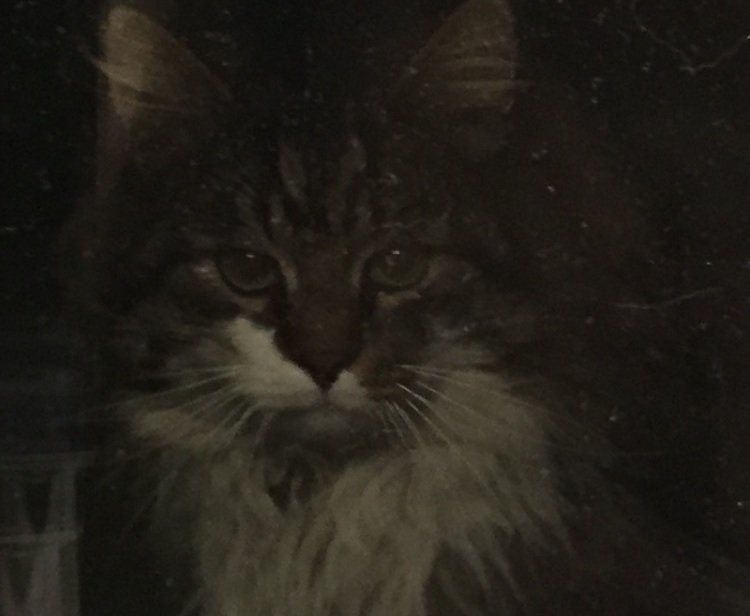 Denne katten har jeg observert i området nå rundt ca 1 år. I begynnelsen var den velstelt, den var borte en periode, men kommer stadig på vinduet vårt om natten pga vår kastrerte hannkatt. Ser at den har blitt tovete og stygg i pelsen, redd, så jeg kommer ikke nær den.