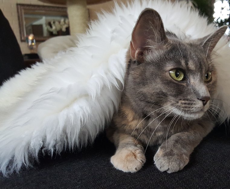 Lykkelig!! Over at Magic endelig har blitt funnet ute under terrassen. Har ropt og lett etter henne i hele natt og morges uten hell, men litt ut på dagen i dag svarte hun med en noe redd mjauing og jeg fikk etterhvert lokalisert hvor hun var. Hun kom forsiktig frem når jeg bøyde meg ned til henne. Hun virket trygg når jeg løftet henne opp og bar henne inn. Hun har spist, drukket og vært på kattedoen, og ligger nå og sover på sengen. Vi er lykkelige og lettet begge to 🐺 😊.