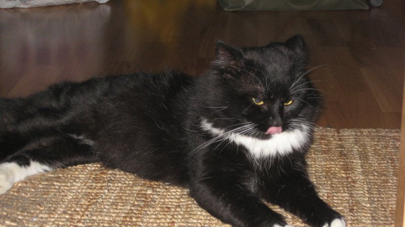 Dukket opp rundt sommertider 2007, da var han ganske tynn og skranten. Var veldig ivrig på å komme inn til oss, og han har også vært inne til diverse naboer. Men ingen vet hvem sin katt det er...Veldig tillitsfull og kontaktsøkende.
