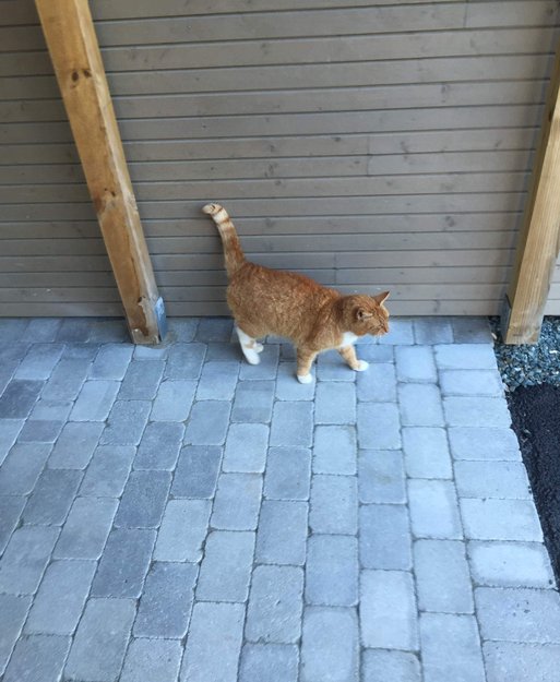 Katten har gått rundt i nabolaget i flere uker. Er fin i pelsen og tillitsfull.