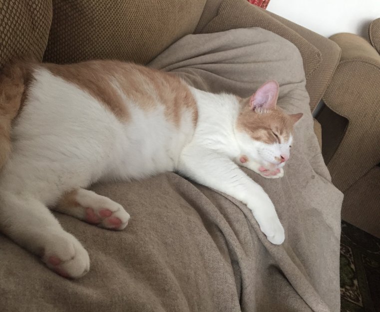 Mømfi er spretten og rask - og liker å leke. Han har vokst opp i en liten leilighet alene med meg, og er ikke vant til andre folk - han kan derfor være litt skeptisk. Han har øyne som stå i samme orangefarge som pelsen.