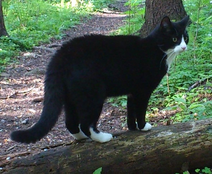 Amigo er Svart med hvite poter, hvitt bryst/mage, og hvitt rundt snute/munn.
