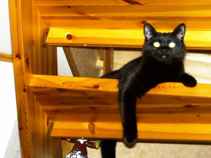 Nøste er helt svart, tynn og litt sky, men veldig nysgjerrig :) Hun mangler en liten bit av det ene øret sitt. KONTAKT Marit tlf 976 27 569 eller tlf 72 88 17 08