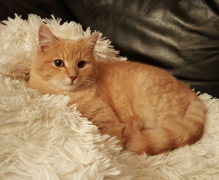 Katten kom til et hus for 10 dager siden men forsvant derfra. Men den flyttet bare 2 hus nedfor. Den er nå tatt inn i dag av Hjelp Pus Hadeland