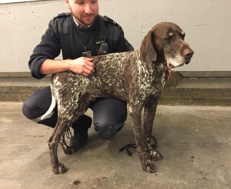 Vekter så hund uten eier og venter på falken. Hund gått alene en god stund