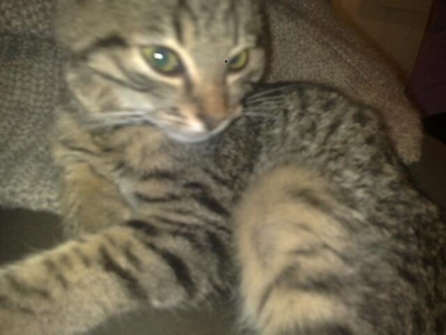 Kattungen stod utsultet utenfor i hagen vår og mjauet høylytt. Den var iskald og utrolig sulten. Det virker som den også har vondt i ørene sine. Vi tok den inn og gav den mat. Den var veldig tillitsfull, og gikk rett i kattesanden når den måtte gjøre sitt fornødne.
