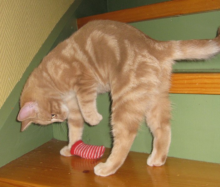 Var helt beige da vi fikk den, men er blitt litt rødere i fargen etter hvert. Mønster delvis som ringer. Er knapt 6 mnd gammel og har ikke vært så langt hjemmefra foreløpig. Har heller aldri før vært borte over lengre tid. Kosete "fang-katt", leken. Mulig den reagerer på navnet sitt...