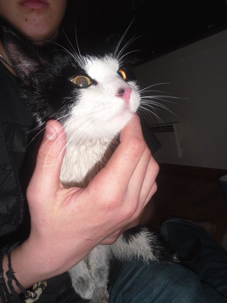 Vi fant ikke eierene til katten som kom sulten , syk og tynn til oss. Men vi fikk han til dyrlegen, han ble frisk og la godt på seg, ble deretter kastrert og chippet Fikk masse kos og kjærlighet her i 2 måneder. Var hele tiden i kontakt med dyrebeskyttelsen i Drammen som hjalp til med å finne en god familie til ham. Han heter i dag Tommy og lever et lykkelig liv hos sin nye familie <3