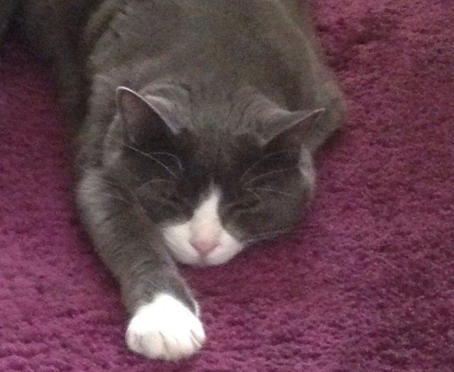 Muffin snek seg ut av et vindu, han har kommet til oss fra Dyrebeskyttelsen, og har ikke slått seg helt til ro i det nye hjemmet sitt her ennå. Han er veldig sky og engstelig av seg.