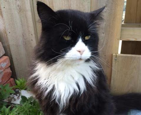Sort og hvit langhåret kastrert hannkatt som er godt voksen. Han mangler en hjørnetann oppe og er id-merket med tall i øret som dessverre er umulig å lese. Katten har oppholdt seg i Innherredsveien ved Dronning Mauds minne i flere uke, og ingen i området kjenner til katten.