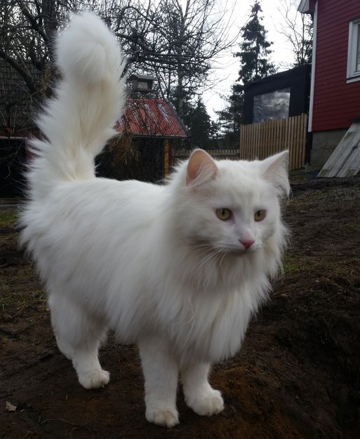 - Katt, 50% tyrkisk angora, 25% ragdoll, 25% norsk skogskatt