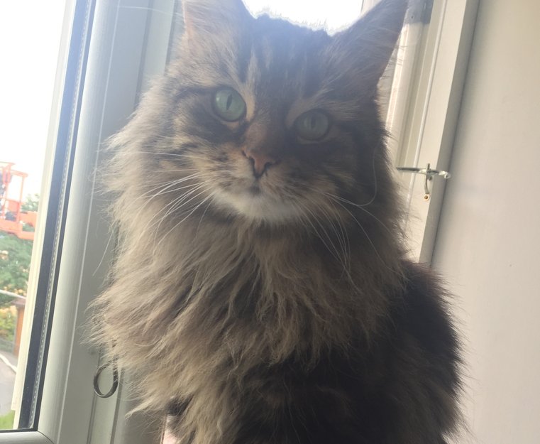 Hun er vanligvis kun inne i bakgården når hun er ute, men vi tror at hun har blitt skremt av to andre katter som en sjelden gang også henger der. Hun har nok kommet seg ut i Gjeble Pedersonsgate og etter det tror vi at hun har gjemt seg under biler eller i busker og sikkert blitt veldig stresset og skremt av alt bråket fra både 16. og 17. mai. Hun er folkesky og redd, så hun pleier å holde seg unna folk og dyr hun ikke kjenner. Har veldig grønne øyne og er nok ikke lett å lokke til seg.