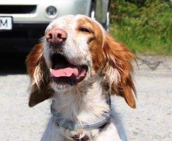 Døren stod åpen og hun stakk av. Dette er en 11 år gammel fuglehund som nok har løpt i noen timer før hun har blitt sliten.