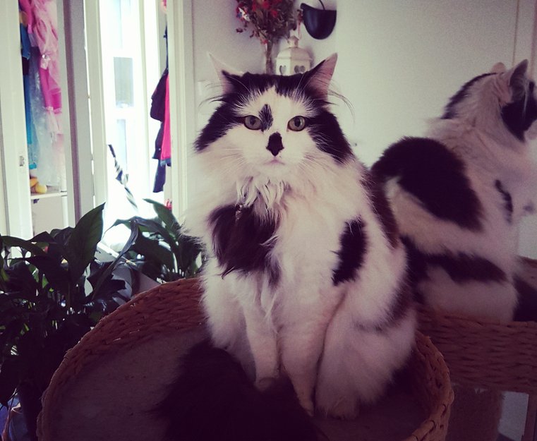Svart og hvit langhåret skogskatt/ huskatt forsvant fra kjærlighetsstien mandag den 30/5.