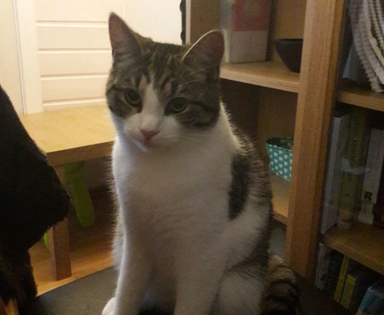 Gråbrun. mye hvit hannkatt var savnet i Nesodden