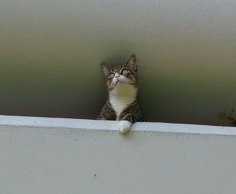 Katten min er egentlig inne katt men hadde tilgang til balkong, han har i løpet av natten hoppet ned hvor han ikke ville greid å komme opp igjen. Noen naboer har sett hann dagen etter uten for blokken, jeg er ute jevnlig i alle døgnets tider og roper på han uten hell