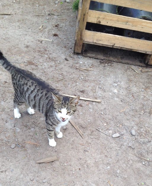 Grå stripete - hvite hunnkatt ble funnet i Sarpsborg
