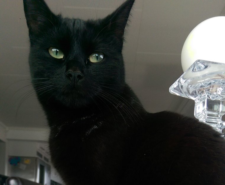 Hun er 1år gammel så hun er ikke så stor. Hun er helt sort. Veldig kontaktsøkende og leken. Hun er sterilisert, øremerket og chippet.