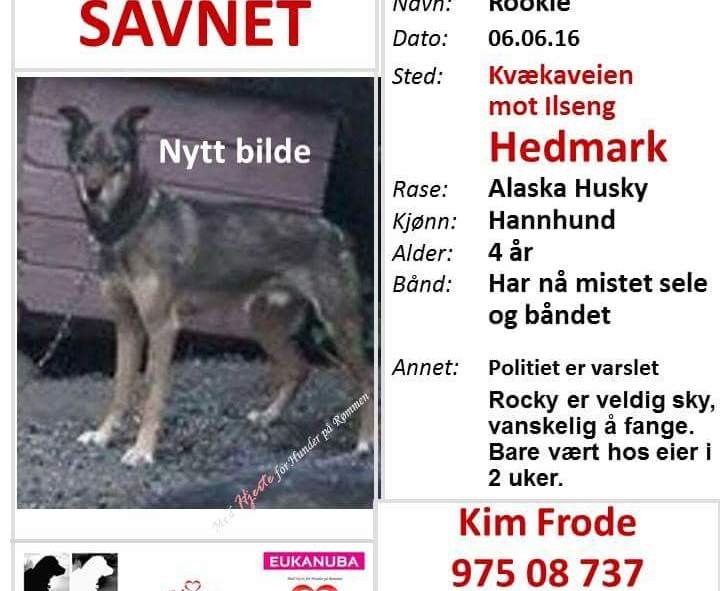 Magebeltet røyk under gå tur og han forsvant. Meget sky hund, som trolig ikke vil ta kontakt med folk.