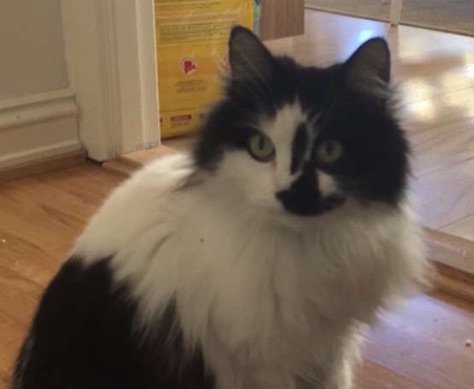 Hun er mer voksen enn bildet viser. Hvite poter. Hun har store grønne øyne. Kosete, men litt sjenert og usikker på mennesker. Hun er chippet, men har ikke halsbånd.