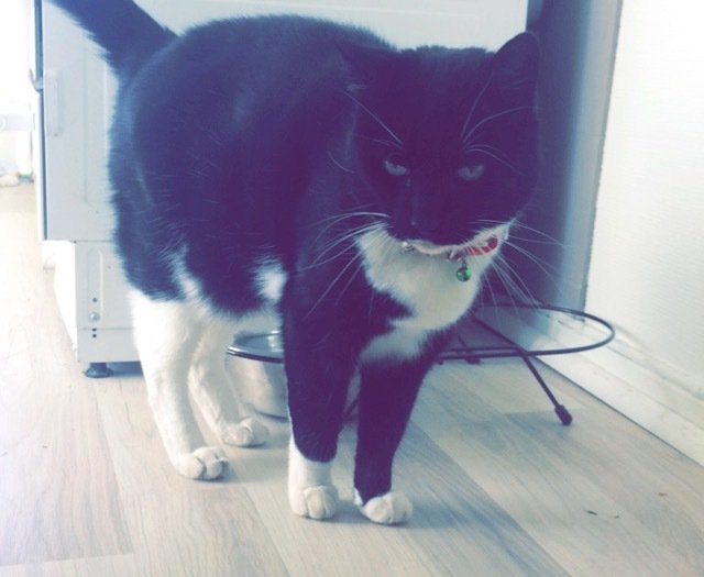 Katten ble sluppet ut og kom ikke tilbake, han kommer alltid tilbake når vi står å roper på han. Vi frykter han har blitt påkjørt..