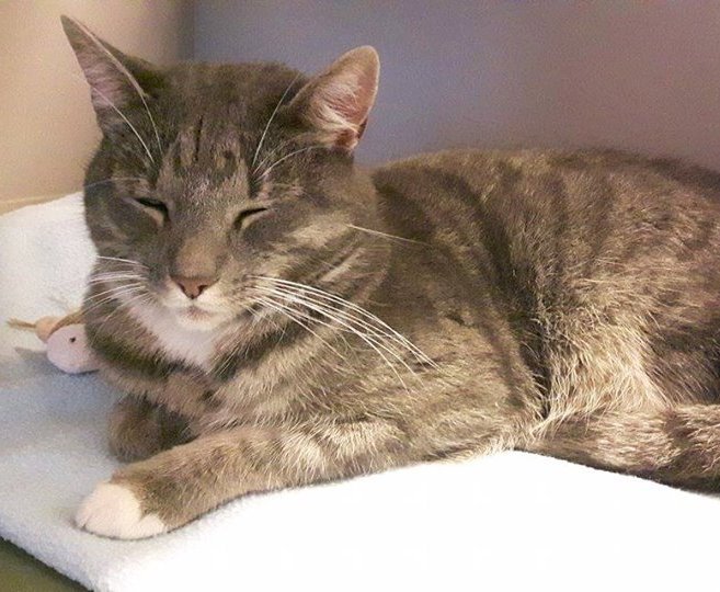 Katten ble funnet på postsentralen på Sluppen. Den holdt på å bli påkjørt. Katten er kastrert og id-merket, men vi får ikke kontakt med eieren. Katten heter Catnip. Er tatt inn av Dyrebeskyttelsen.