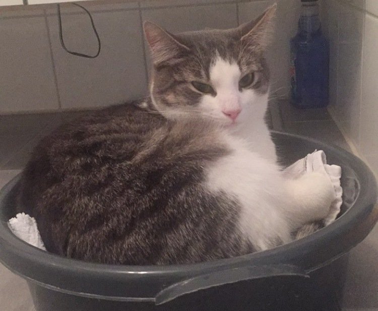 Kom tilbake etter at han trolig ble stengt inne i garasje. Utrolig glad og lettet for at han er kommet hjem til matmor, matfar og søsterkatten :)