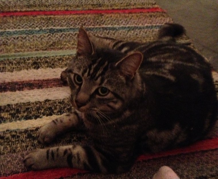 Noen hakk i ørene, veldig snill men nok så stor gutt. Klarer så vite å mjaue.