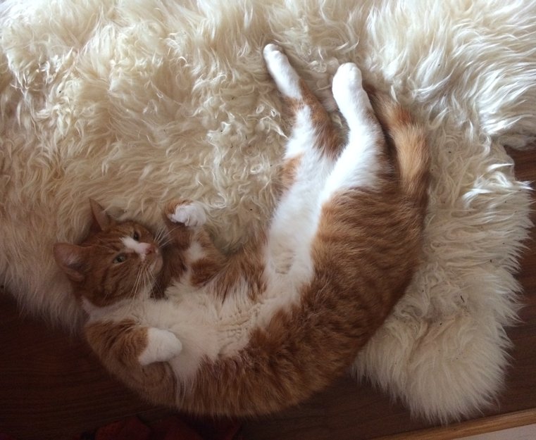 Hvit nese, labber og mage/hals. "ID" tattovert i øret. Ca 5,5 kilo