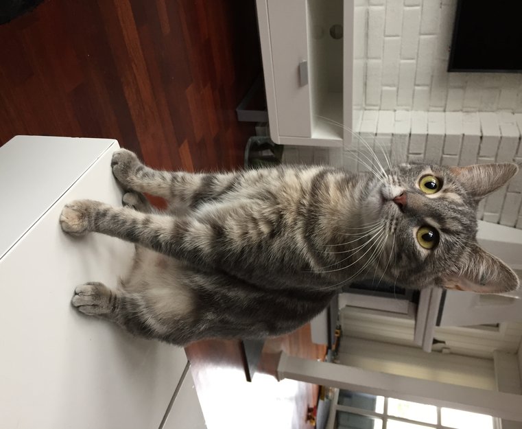 Silver er ei ung pusejente. Hun er både redd og sky. Hun har store redde øyne. Hun er tofarget, både litt tigret i pelsen men også flotte "tegninger"/mønstre på siden. Hun veier ca 3 kg er 10-11 mnd gammel og redd fremmede.