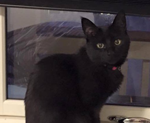 Hun er en korthåret m.c blanding er slank med store grønne øyne og helsvart