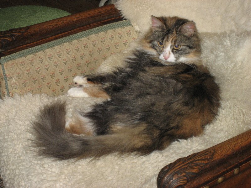 10/1 : Etter å ha hengt opp plakater på forskjellige steder har ingen eier meldt seg. På grunn av den ekstreme kulda har vi tatt katten hus og den får nå mat og kos. Den har spist og sovet mest i to uker men er nå leken og tar seg en tur ut på dagtid. Hvis ingen melder seg blir den vel her. 26/3 Ingen har meldt seg som eier, dermed blir pusen boende her hos oss !