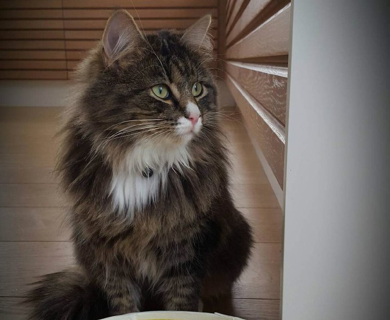 Sosial, relativt liten hunkatt, pt uten halsbånd, men med chip operert inn i nakken. Holder seg ofte ved barn eller mennesker, ofte v barnehager/ skoler eller Universitetet i Oslo.