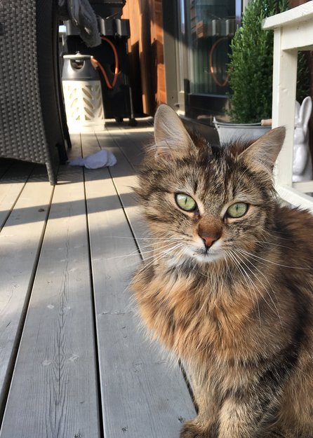 Vi hang opp lapper ved postkassestativ og butikker. Så ringte eieren opp. alt står bra til med katten, men den er drektig og skal ha små om få dager. Håper noen i løpet av sommeren ønsker seg en katt 👍🏼😊